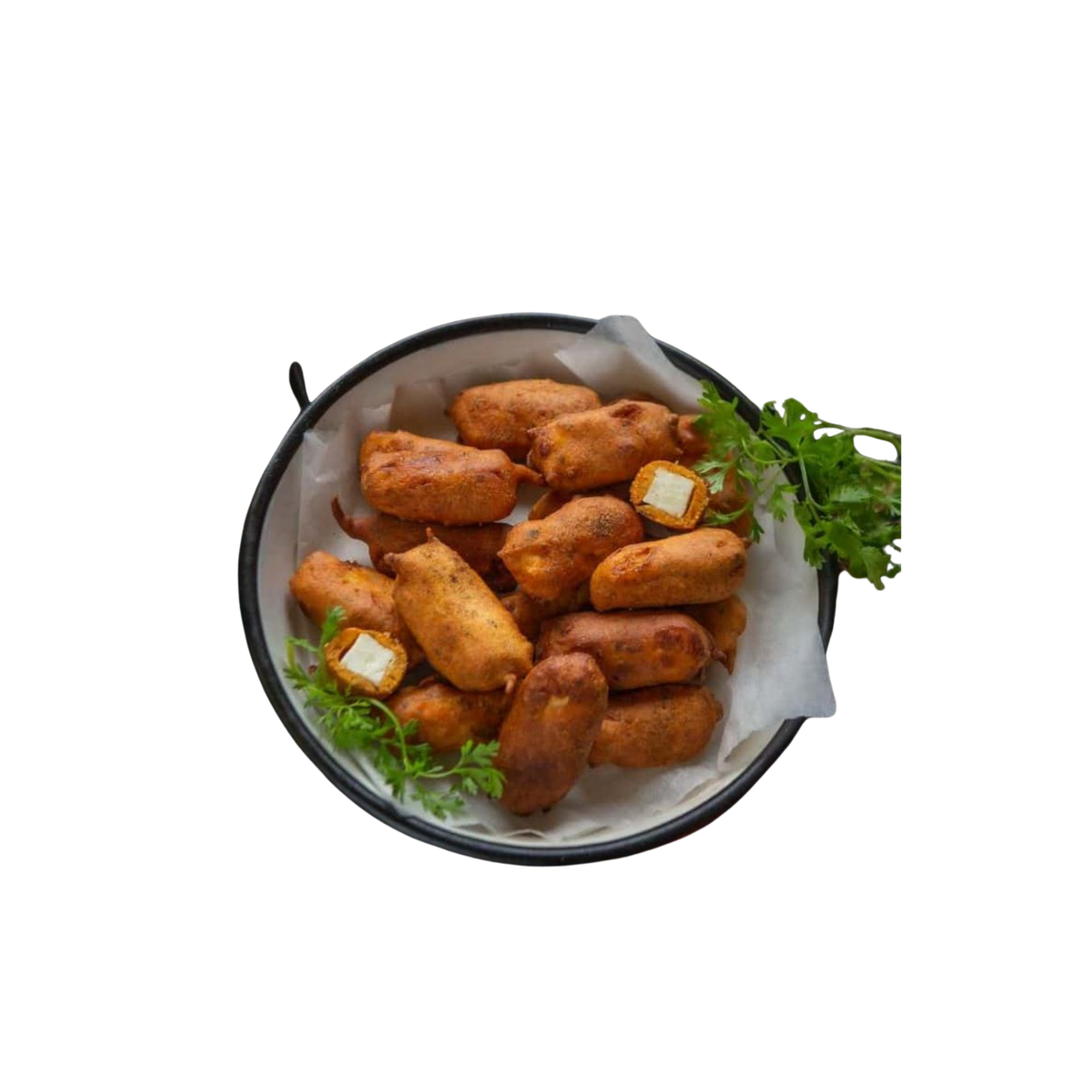 Paneer cheese fried in a delicate chickpea flour batter.